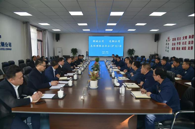 11月18日,龍鋼公司與韓城公司召開總經(jīng)理聯(lián)合辦公(擴(kuò)大)會(huì)。龍鋼公司黨委副書記、總經(jīng)理李都宏,黨委委員、副總經(jīng)理馮偉,副總工程師習(xí)曉峰,韓城公司副董事長、總經(jīng)理趙林,韓城公司副總經(jīng)理袁浩、韓城公司西安分公司總經(jīng)理助理趙剛及雙方公司相關(guān)部門負(fù)責(zé)人參加會(huì)議。會(huì)議由李都宏主持。