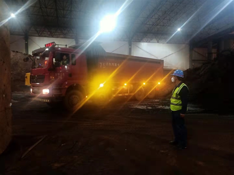 “喂,薛工,剛接到通知,需要將合力和陽光兩種焦炭進行混堆,但這配比當中兩個還是分開的。”物料管理作業(yè)區(qū)二班工長周武強一邊打電話一邊走出值班室。彼時是下午3點40分左右,他已經(jīng)將堆放焦炭的5個大棚整體巡查完一遍,安全帽下清晰可見一層晶瑩的汗珠。從平常的7種左右到如今的12個品種,后續(xù)進購可能要增加到15個品種,焦炭卸車、裝推車輛保障、場地規(guī)劃、人員安全等等,他事無巨細都要全盤考慮。由于進購廠家較多,車輛已經(jīng)在值班室東側(cè)分兩邊排開,有些后來的司機接到通知要去東湖渣場排隊,表現(xiàn)出極大地不情愿,他耐心地為司機做好解釋和引導(dǎo)。