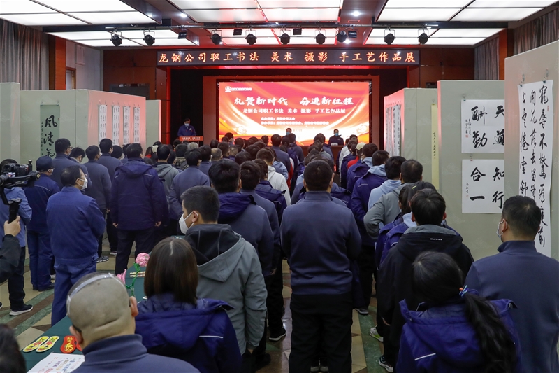 薛社康致辭。他表示,此次書法、美術(shù)、攝影、手工藝作品展中,所有作品均是一線干部職工的最新力作。他們通過光影藝術(shù)、筆墨抒情,展現(xiàn)了近三年來公司上下一心,“重整行裝再出發(fā) 浴火重生開新局”的鏗鏘步伐,謳歌了龍鋼工匠、勞動(dòng)模范等先進(jìn)典型,展現(xiàn)了廣大干部職工積極投身企業(yè)生產(chǎn)一線的火熱場(chǎng)景和歷史記憶。同時(shí)也為廣大書畫、攝影愛好者提供了一個(gè)發(fā)現(xiàn)自我、充實(shí)自我、展現(xiàn)自我的舞臺(tái),引導(dǎo)全體干部職工從黨的故事、革命的故事、龍鋼的故事中,堅(jiān)定理想信念,汲取奮進(jìn)力量。希望廣大干部職工以此次活動(dòng)為契機(jī),追憶初心故事、傳承紅色基因,在黨的二十大精神指引下,堅(jiān)定不移跟黨走、團(tuán)結(jié)奮進(jìn)新征程,在藝術(shù)創(chuàng)作和工作生活中,弘揚(yáng)偉大建黨精神,自信自強(qiáng)、守正創(chuàng)新,踔厲奮發(fā)、勇毅前行,為企業(yè)高質(zhì)量發(fā)展作出新的更大的貢獻(xiàn)。