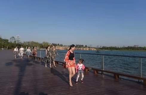 湖堤上,有幼兒牽著媽媽的手,姍姍學(xué)步;有情侶手拉著手,走著笑著;有年長(zhǎng)者推著輪椅,載著老伴,緩緩前行……湖邊小廣場(chǎng)上,忽聽得鼓樂聲響起。那是來湖邊休閑的市民和游客們正在欣賞著自樂班的秦腔表演,動(dòng)情處,掌聲雷動(dòng),喝彩聲不斷。恬靜而不失動(dòng)感,靈秀中透出質(zhì)樸,顯現(xiàn)了北方地域的獨(dú)特景致,動(dòng)靜交融,渾然一體。